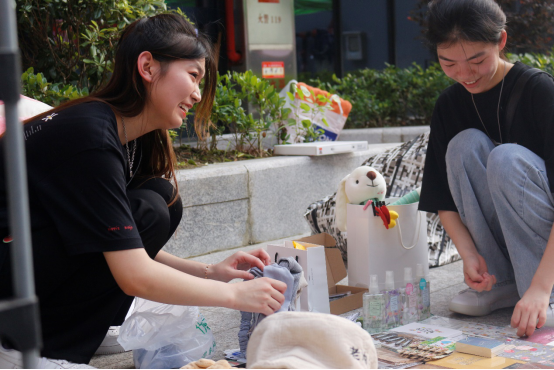 本次活动充分吸引了同学参与,最终现场设置了50个摊位。售卖商品种类众多,有绿植鲜花,生活用品,玩偶,自制帽子等。摊主们为吸引更多的“客人”光顾,使出了浑身解数:有的精心布置摊位;有的一边挥舞着自制的宣传牌,一边大声吆喝叫卖;有的打出“买就送”的标语,吸引了大批同学驻足围观。