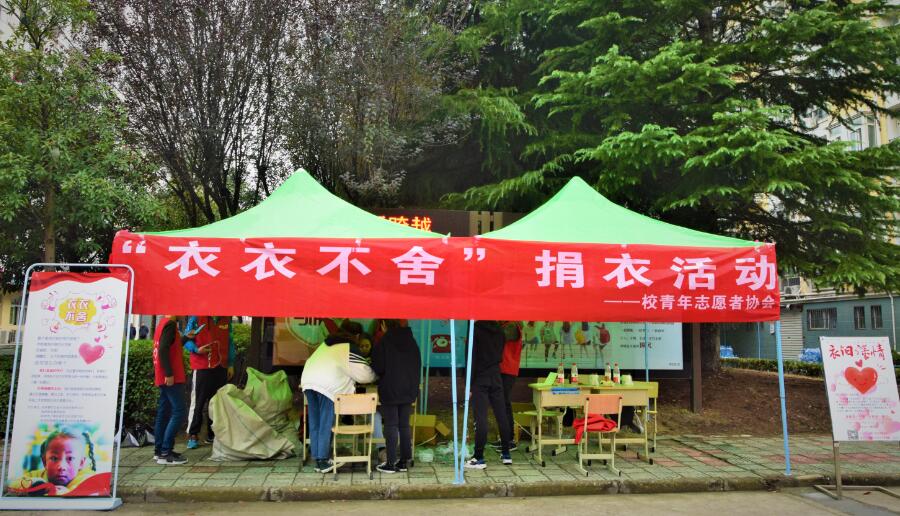 11月12日至11月14日,校青年志愿者协会在含晖苑和嵩阳苑两个生活区内开展了为期三天的“衣衣不舍”捐衣活动,在此次活动中,校青协的同学们积极参与前期宣传与准备工作,本次活动旨在回收旧衣物,为山区贫困儿童收集衣物,从而能够为山区儿童送去一份温暖。