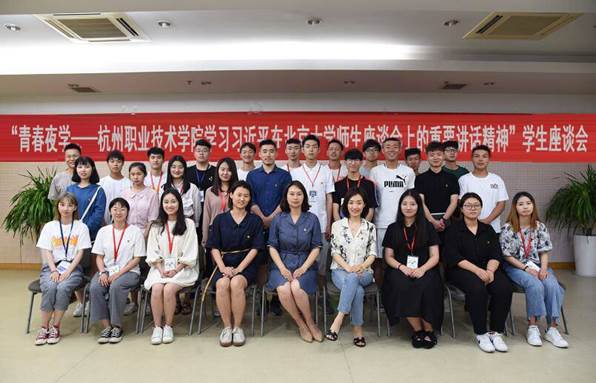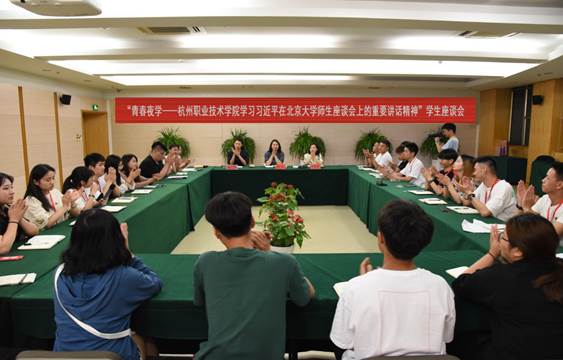5月16日晚,“青春夜学——杭州职业技术学院学习习近平在北京大学师生座谈会上重要讲话精神”学生座谈会在行政楼第四会议室举行。学工部部长韩亮、校团委副书记何霞红、校团委老师王正及各二级学院、校级学生组织学生代表30名参加本次座谈会。座谈会由校团委副书记何霞红主持。