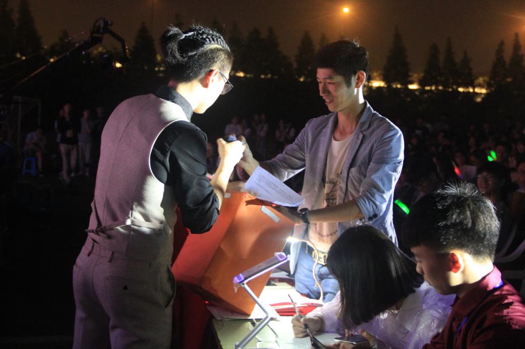 为了让全校师生尽情观赏十佳歌手比赛,校团委首次将比赛场地放在学校操场,比赛现场人山人海。16位选手经过海选的层层角逐,进入十佳歌手总决赛,整个晚会流光溢彩。在演唱过程中,选手们各显神通,为观众们带来一场视听的饕餮盛宴。决赛选手们依次演唱《你是我的眼》、《会痛的石头》、《往事随风》等一些耳熟能详的歌曲,将晚会的气氛点燃,同时博得了众人的喝彩和掌声。比赛中场由学生会带来的舞蹈,热情奔放的姑娘、性感妖娆的舞姿,将青春用别样的方式演绎的淋漓尽致,将比赛推向了另一个高潮。观众席上,由教师评委和学生大众评委组成的评审团也正忙碌地为现场的每位比赛选手打分。经过四轮的激烈角逐,评审团打分后,最终由友嘉机电学院王沛望同学摘得校园十佳歌手桂冠,金都管理学院谢臻同学获得亚军,金都管理学院胡祎晗同学获得季军。
