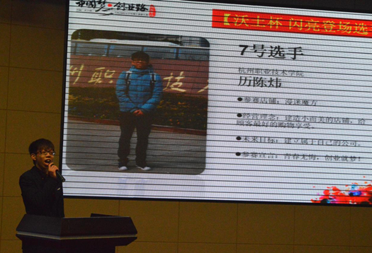 12月29日,首届“沃土杯”在杭高校大学生网上创业大赛总决赛在浙大紫金港校区盛大开启,来自我校和浙大、杭师大、计量、杭电、财大、长征职院的10强选手将展开最后角逐。通过一个多月的网店运营,进入复赛的108名创业大学生不断离开比赛,最后只剩下10名站在今天的舞台上,从一个个电商小白成长到一个个三钻卖家,每个人脸上都洋溢着兴奋与喜悦。