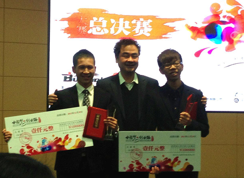在现场鏖战了近4个小时后,比赛结果终于揭晓,陈翔、历陈炜2名同学荣获三等奖。他们将获得1000元的奖金、可申请30万元贴息小额贷款,并给予配备一对一的创业导师,优先推荐杭州市大学生创业无偿资助、杭州市大学生创业学院强鹰班、入驻杭州市市级大学生创业园。同时,我校与浙江大学、杭州师范大学同获“优秀组织奖”。我校校长叶鉴铭应邀出席10强总决赛,并与陈翔、历陈炜2名优秀学子合影留念。