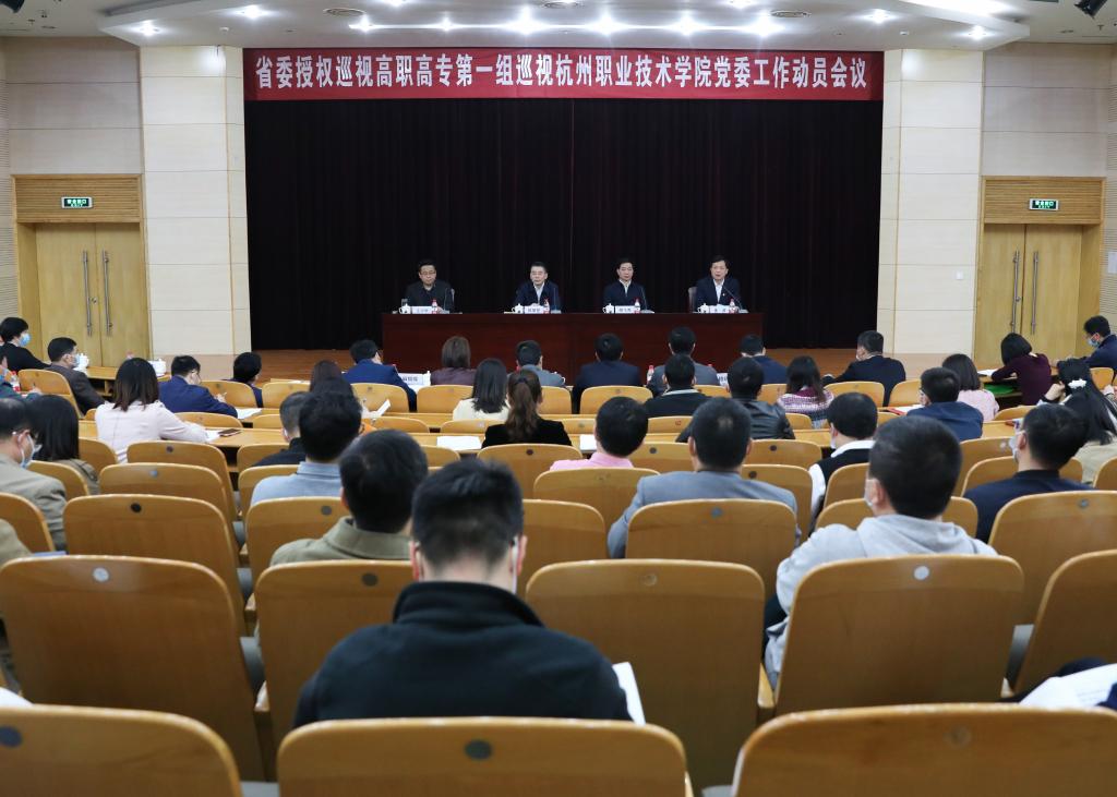 根据省委授权,经省委巡视工作统一部署,2021年4月1日上午,省委授权巡视高职高专第一组巡视杭州职业技术学院党委工作动员会议召开。会前,杭州市委巡察工作领导小组组长陈擎苍受省委巡视工作领导小组委托,向杭州职业技术学院党委书记金波传达了省委书记袁家军同志的讲话精神。会上,省委授权巡视高职高专第一组组长江小华就即将开展的巡视作了动员讲话,陈擎苍就配合做好巡视工作提出要求,金波主持会议并作表态发言。