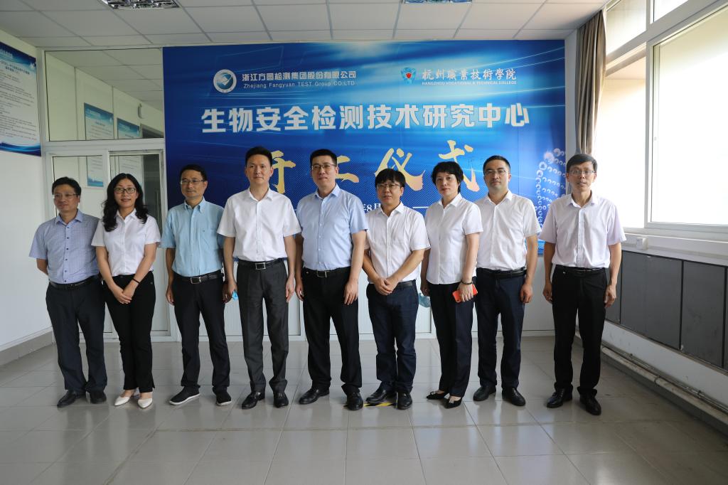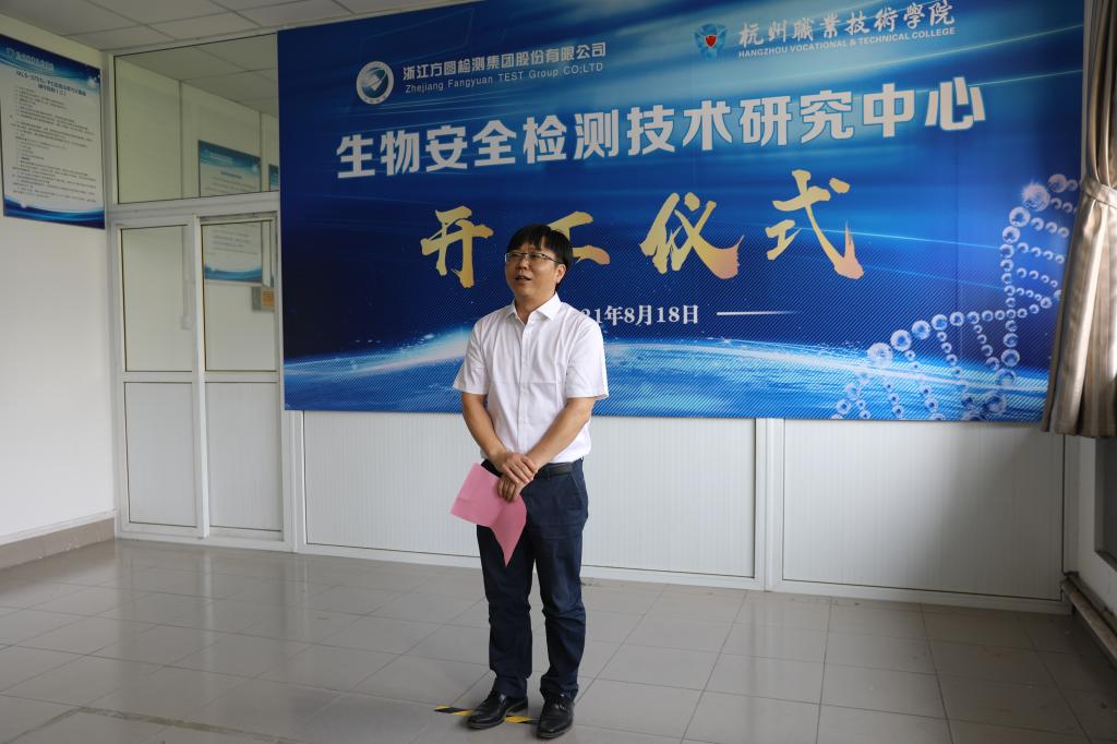 8月18日,杭州职业技术学院与方圆检测集团共建生物安全检测研究中心开工仪式顺利举行。浙江省市场监督管理局总工刘璇,方圆检测集团党委书记、董事长蒋扬名,党委副书记、常务副总金晖,副总经理陈洪波,食品所所长盛华栋;我校校长徐时清,副校长楼晓春,以及党政办、专业建设指导处、公管处、后勤服务中心负责人和生态健康学院班子、教师代表现场见证。开工仪式由楼晓春主持。