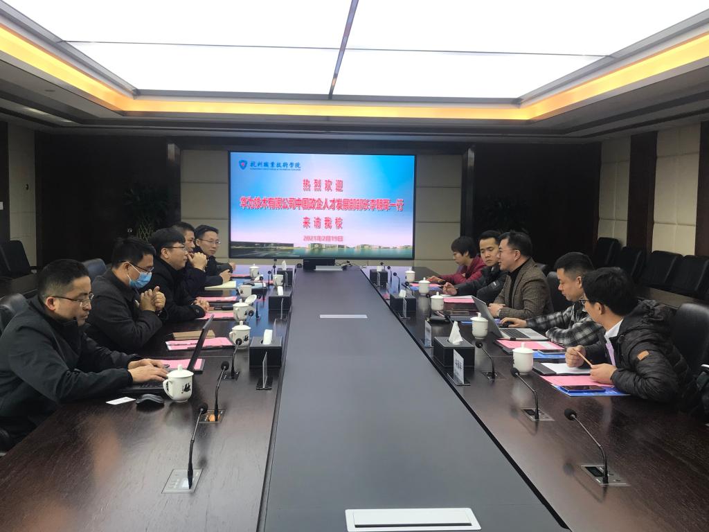 2月19日,正值正月初八,师生们还沉浸在春节的喜悦之中,学校开年工作已拉开序幕。当日上午,华为技术有限公司中国政企人才发展部部长李朝军一行5人来校洽谈,校长徐时清、副校长陈加明、楼晓春,党政办、专业建设指导处及信息工程学院负责人参与接待。