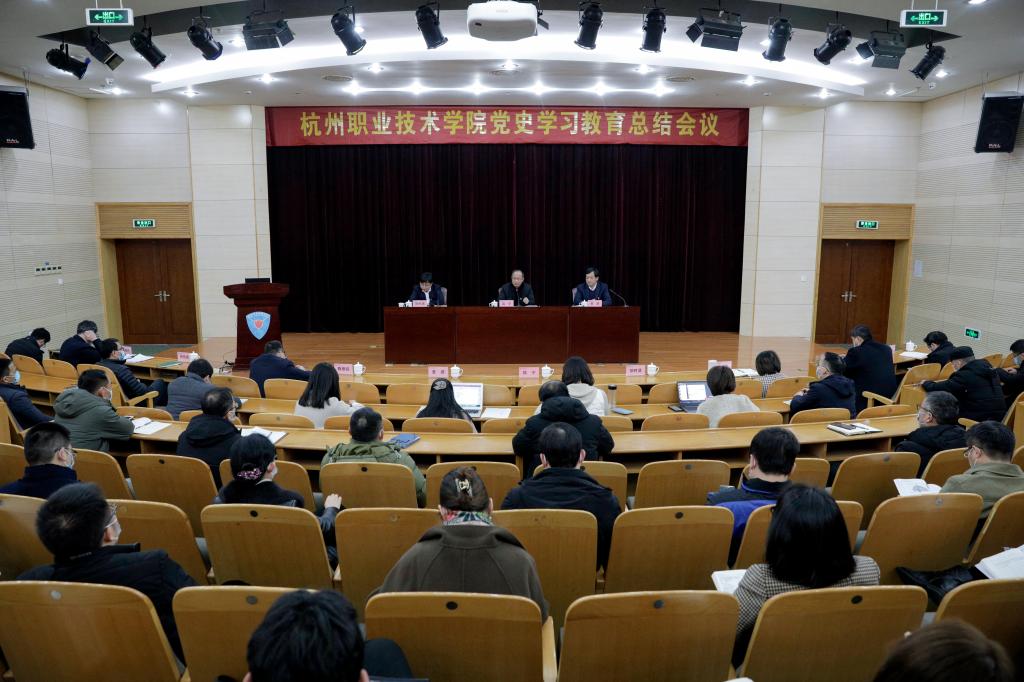 党委书记金波代表学校党委全面总结了杭职院党史学习教育开展情况和特色举措,并对下一步工作提出了要求。金波指出,学校党委把党史学习教育作为贯穿全年工作的重要政治任务,强化组织领导,健全工作机制,压实责任,务求实效,把学习党史与学习党的创新理论结合起来,与做好中国共产党成立100周年庆祝活动结合起来,与推进双高建设各项工作结合起来,与加强“内部治理年”“数智杭职·工匠摇篮”等中心工作推进结合起来,立足实际、守正创新,精心组织、深入推进,推动党史学习教育扎实有效开展,做出了“杭州味”,干出了“职教味”,学出了“杭职味”。