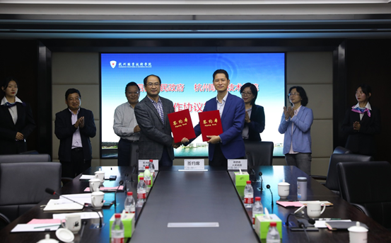 最后,在双方领导的共同见证下,张赵根与叶敏代表双方签订了校地战略合作协议。校地双方将共建“智慧旅游人才培养基地”,按照“依据需要,项目驱动”的思路,在高素质技术技能人才培养、人员培训、应用性科学技术研究推广等方面进行全面合作。