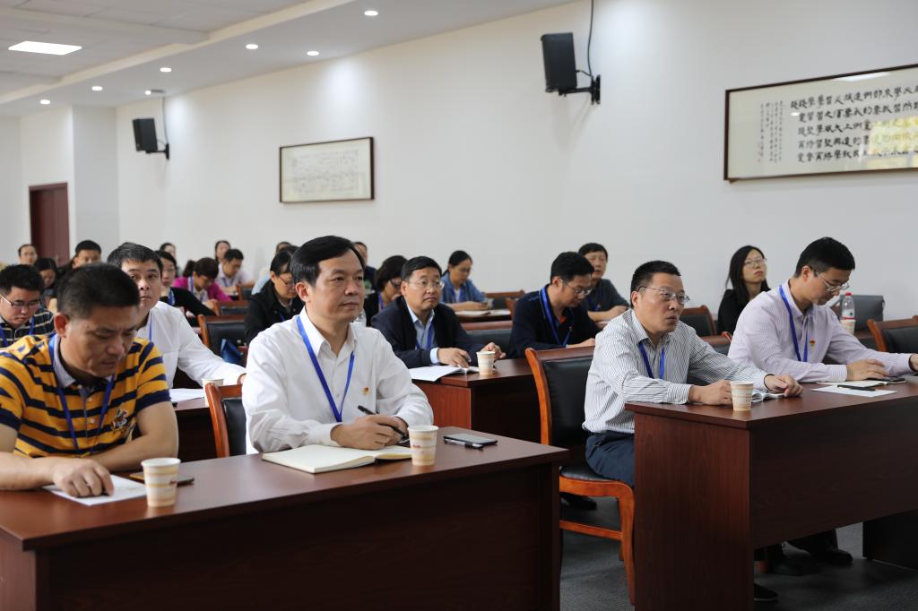 在浙江红船干部学院内,浙江红船干部学院、中共嘉兴市委党校研究中心副主任杨骁晨为我校党员干部开展了《弘扬红船精神,坚定文化自信》的专题党课。