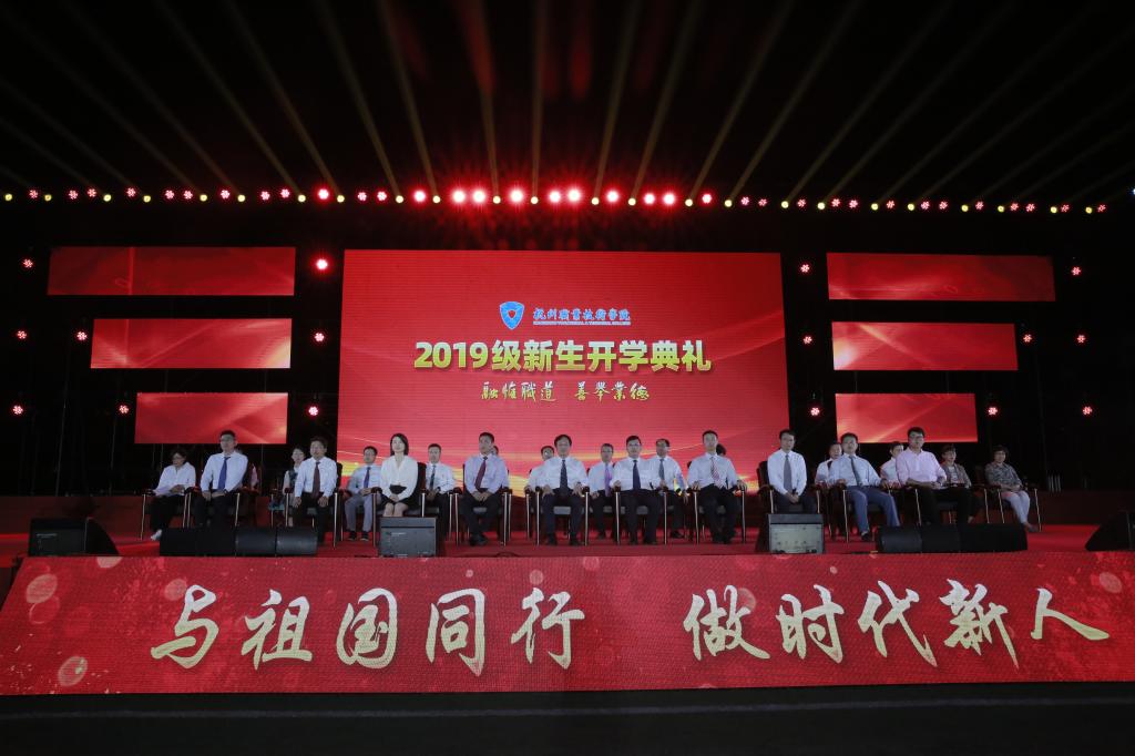 秋风送爽,桂影扶疏。9月29日晚,我校2019级新生开学典礼暨“我与祖国共奋进”迎新晚会在学校田径场隆重举行。学校党委书记金波,党委副书记、校长贾文胜及学校全体党政班子成员、企业嘉宾,相关职能部门负责人、二级学院领导班子、校友代表、教师代表以及2019级4815名新生出席。开学典礼由校党委副书记陈泉淼主持。