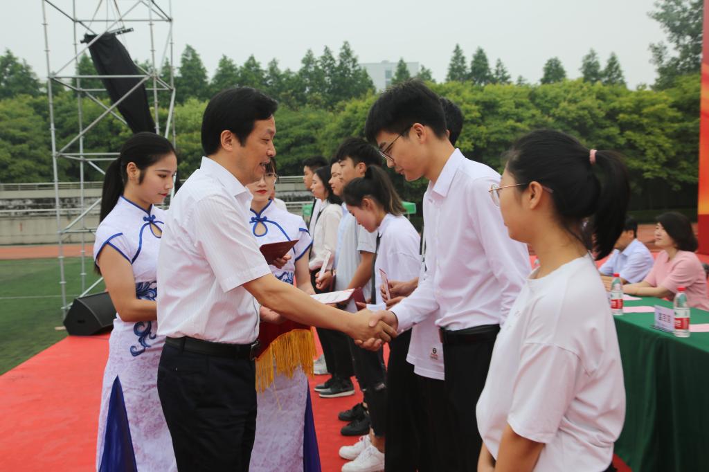 典礼在庄重而激昂的国歌声中拉开了序幕。副校长陈加明宣读省级优秀毕业生表彰文件,党委书记金波为优秀毕业生代表颁发证书;副校长金徐伟宣读2019届校友联络员聘任文件,校长贾文胜为校友联络员代表颁发聘书。