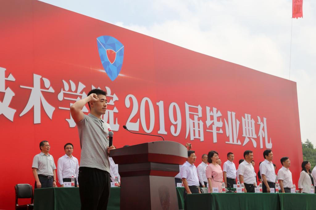 又到六月毕业季,又逢依依惜别时,又是扬帆启航日。6月14日,我校2019届毕业典礼在学校操场和图书馆隆重举行。学校党政领导班子成员金波、贾文胜、陈泉淼、陈加明、金徐伟、楼晓春、麻朝晖、程利群,杭州友佳精密机械有限公司总经理温吉堂,杭州西奥电梯有限公司人力资源部总监傅美芬,各二级学院领导班子、学校相关部门负责人,家长代表、教师代表、辅导员、班主任和2019届全体毕业生共同出席毕业典礼。