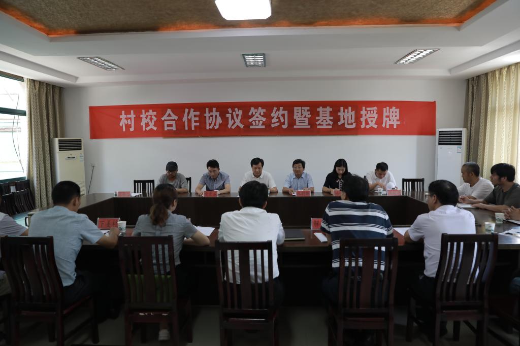 麻朝晖与姜浩强签订“校村合作”协议,金波为下姜村实践研究服务基地授牌。