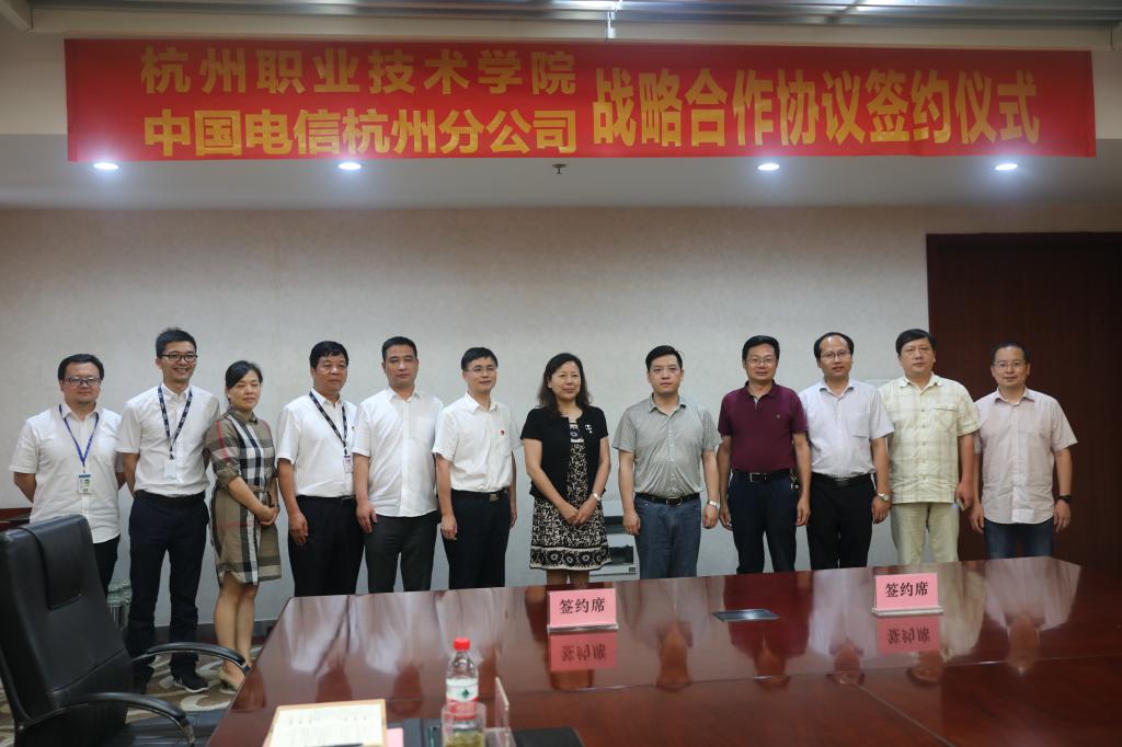 7月3日下午,杭职院与中国电信杭州分公司战略合作协议签约仪式在电信大厦31楼第六会议室隆重召开。我校校长贾文胜、副校长张洪宪以及党政办、宣传部、专业建设指导处、图信中心等相关负责人,杭州电信分公司总经理章晓钫、副总经理周臣武以及下沙分局、校园中心相关负责人共同出席会议。会议由杭州电信分公司校园中心经理傅卫英主持。
