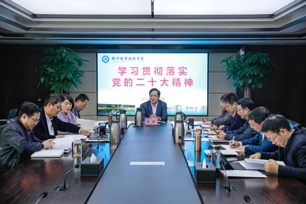 10月20日,杭职院党委理论学习中心组召开专题学习会,传达学习习近平总书记代表第十九届中央委员会向党的二十大作的报告精神。学校全体领导班子成员,办公室、宣传部负责人参加会议,党委书记金波主持会议。