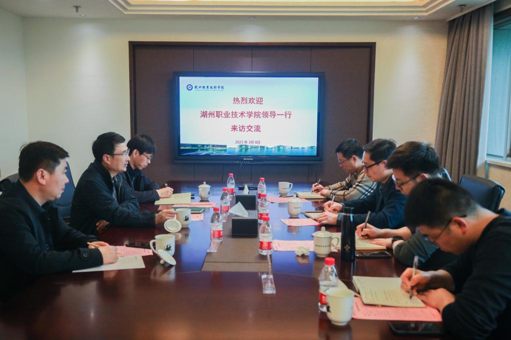 3月8日下午,湖州职业技术学院副校长肖先波,教务处(双高建设处)处长姜义平,副处长何勇、王荣扬一行4人来访我校。学校副校长楼晓春、教务处负责人参加接待。