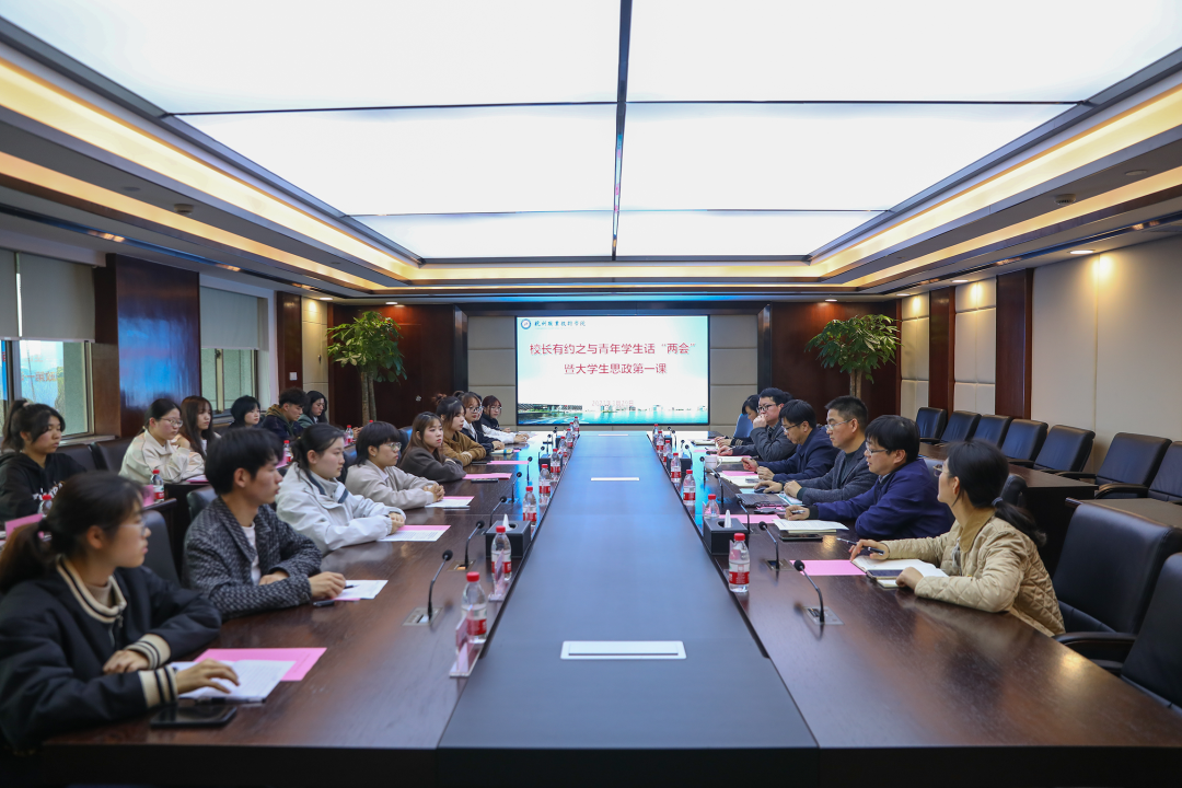 勇担强国复兴使命,书写亮丽青春答卷。3月29日, 第一期“校长有约”活动在528会议室举行,徐时清校长为学生上2023年思政第一课,与各二级学院学生代表进行了亲切交流,与青年学生畅谈全国两会、共话成长发展。