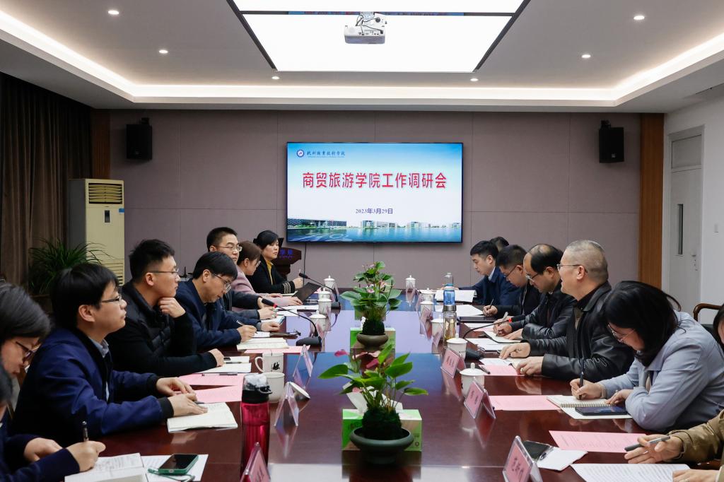 办公室、科研处、人事处、教务处、学生处等职能部门相关负责人陪同调研。商贸旅游学院班子成员、内设机构负责人、各专业负责人和博士教师代表参加座谈交流。
