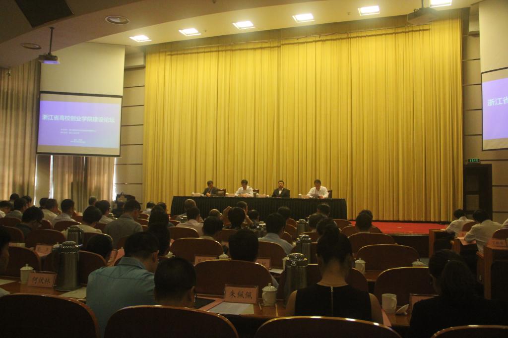 5月25日,浙江省高校创业学院建设论坛在杭州举行。浙江省教育厅厅长郭华巍、教育部学生司副司长荆德刚、省教育厅副厅长朱鑫杰,全省高校领导、创业学院负责人、创新创业教育相关专家等共200多人参加论坛。我校副校长陈加明率创业学院、专业建设指导处、学生处、各二级学院负责人以及创新创业教师代表共20余人参加了本次论坛。