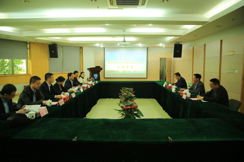 双方在行政楼第四会议室进行了座谈交流。张洪宪详细介绍了我校的办学理念及校园布局。双方就校园环境布置、数字校园建设、资产管理等方面进行了交流和探讨。