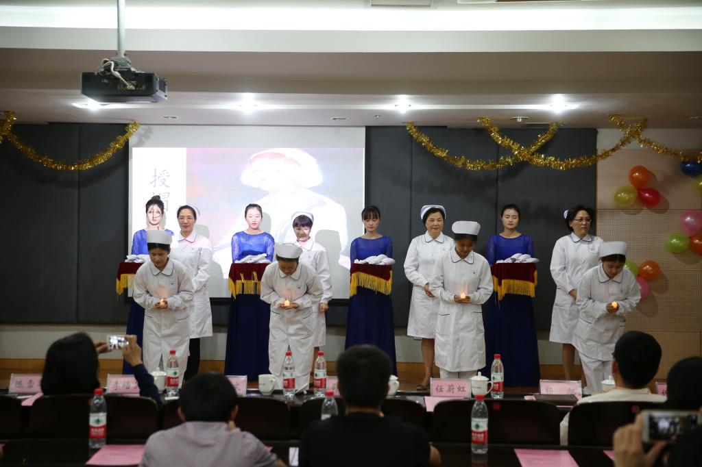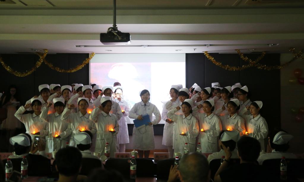 授帽仪式将活动推向高潮,在庄重的音乐声中,44位护生身着白色护士服,面带微笑,护理前辈们逐一为他们戴上圣洁的燕尾帽,传递手中的蜡烛,送上祝福语。随后,白衣天使们在班主任沈泽群的带领下,在南丁格尔的画像前庄严宣誓:“以救死扶伤、防病治病,实行社会主义的人道主义,全心全意为人民服务为宗旨,履行护士的天职;以自己的真心、爱心、耐心、责任心,对待我所护理的每一位病人;我将牢记今天的决心和誓言,接过前辈手中的蜡烛,把毕生精力献给护理事业。”护生们通过大合唱《爱的奉献》、诗朗诵《漫漫人生路,悠悠天使情》、手语舞蹈《感恩的心》等表演节目,表达了对护理事业崇高的敬业和向往,展示了青春的活力与独特的风采。在全体师生的合影留念下,本次活动圆满结束!