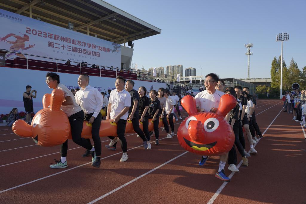在杭州胜利举办亚运会、亚残运会之后,我们迎来了专属于杭职院全体师生的体育盛会。本届运动会以“团结 奋进 文明 育人”为宗旨,以“新时代 新青年 新使命 新作为”为主题。本次运动会竞赛项目分学生男子组、学生女子组和教工组,共42项,参赛选手1200多名。开幕式结束后,教工组的比赛率先登场。老师们配合默契、奋力拼搏,运动会现场精彩纷呈,加油声不停,鼓掌声不断。