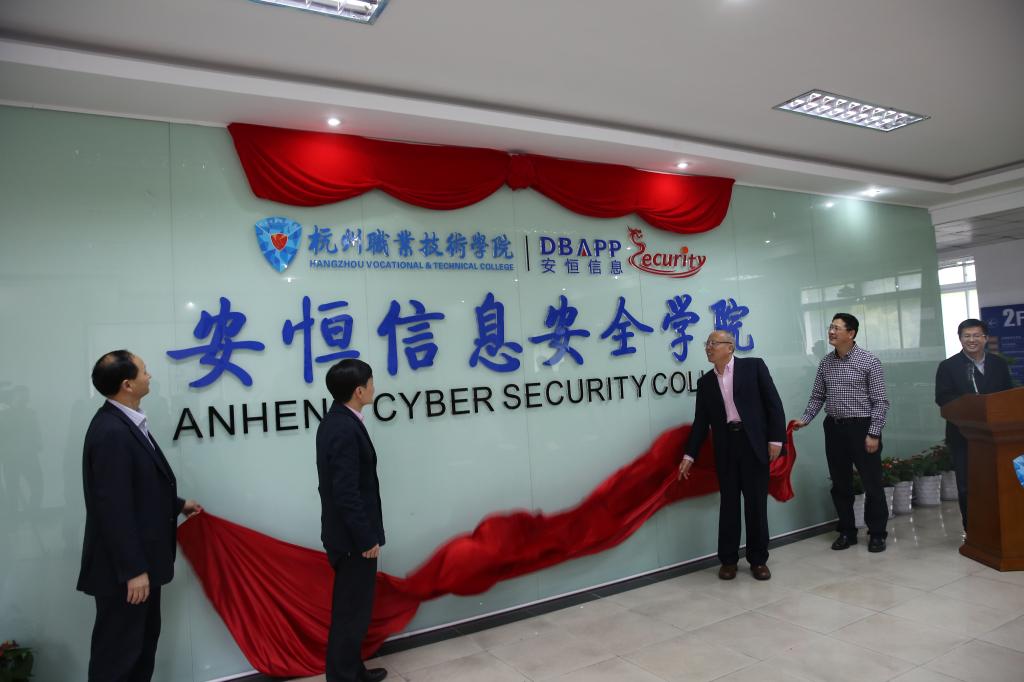 成立仪式上,安蓉泉对各位领导及嘉宾的到来表示诚挚感谢。他指出,杭州职业技术学院在近年来的发展中,确立了校企合作、工学结合、文化育人的办学理念,与区域主导产业的主流企业开展了混搭制、双元制、混合制的深度合作,安恒信息安全学院的成立标志着校企深度合作又迈上了一个新的台阶。他预祝安恒信息安全学院加快发展,多做贡献,为杭州市经济社会的发展培育更多的信息安全人才。