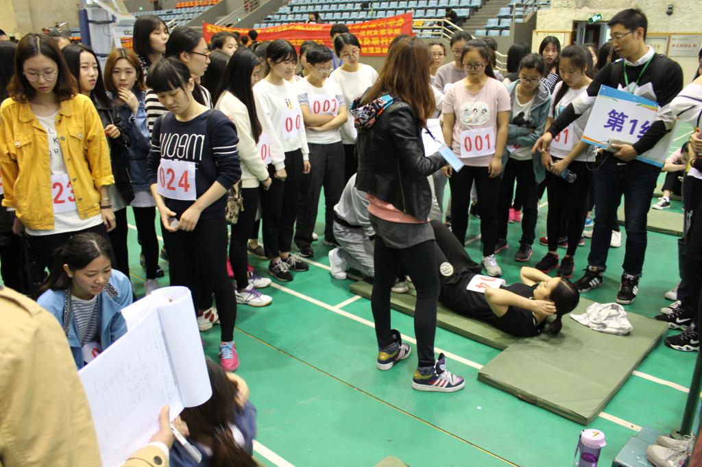 今年我校被省教育厅抽到的240名学生(其中40名为替补)主要涉及金都管理学院、信息工程学院、动漫游戏学院、友嘉机电学院等4个二级分院。按照教育厅专家组安排,当天上午在体育馆测试了坐位体前屈、立定跳远、1分钟仰卧起坐(女)等项目;下午在田径场测试了引体向上(男)、50米跑、800米跑(女)/1000米跑(男)。尽管当天上午天气不佳,但是整个体质测试过程显得井然有序。学生们按时到场并努力发挥,人文社科部体育教师、二级分院辅导员、医务室医生、校卫队成员、志愿者等精神饱满,全身心投入到体质测试中。