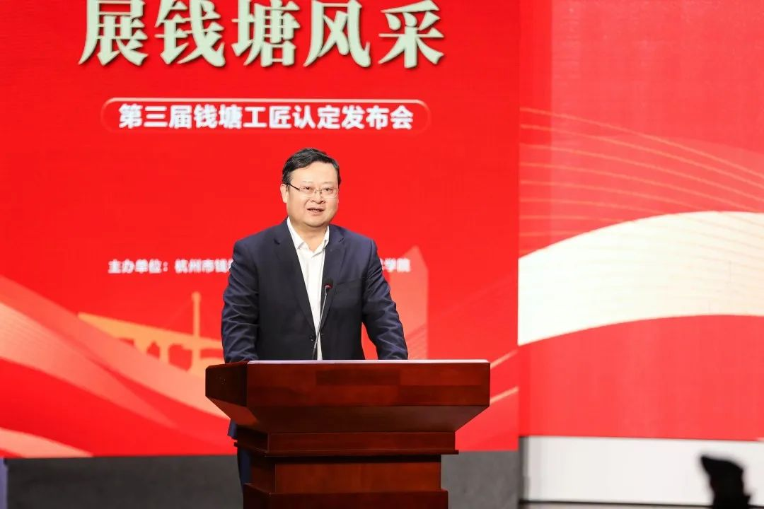金承涛向受到表彰的“钱塘工匠”优秀代表表示热烈祝贺。他指出,当前,正是钱塘建设现代化国际化产业新城、加快打造现代化国际化一流新区的关键时期,希望全区广大干部职工和各行各业劳动者自觉向“钱塘工匠”看齐,在推进钱塘高质量发展的新征程中贡献更大力量、实现更大作为。他强调,要提高政治站位,不断提升同心同向的自豪感;要对标先进典型,不断提升服务发展的使命感;要聚焦主责主业,不断提升职工群众的获得感。