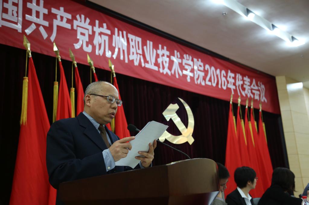 4月20日,中国共产党杭州职业技术学院2016年代表会议在行政楼二楼报告厅召开,我校党委领导班子成员、全体在校党代表、非代表的党员处级干部参加。会议由党委副书记赵一文主持。