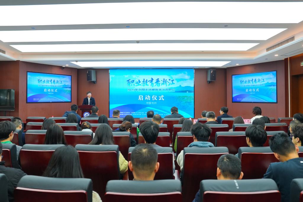 11月27日,“职业教育看浙江”2023年全国主流媒体浙江高职行活动在学校行政楼117会议室举行启动仪式。本次活动由浙江省教育厅指导,浙江日报报业集团主办,浙江在线新闻网站承办。来自全国的20余家主流媒体将前往杭州、金华等地,探访“工匠人才”摇篮如何赋能乡村振兴,探秘“四位一体”产教融合如何助力产业转型升级,聚焦高职教育拥抱数字化带来的新变革,开启一场关于“浙江职教力量”的大观察。