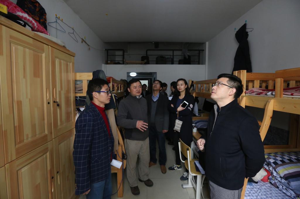 3月18日,我校党委书记安蓉泉、校长贾文胜走访学生公寓,党政办、学工部、资产经营公司等相关部门负责人和各二级学院党总支书记、学工办主任、辅导员一同参加。