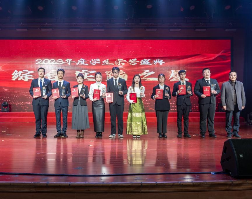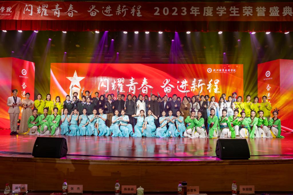 活动中,陈泉淼为获得2023年度“综合实践之星”的学生代表现场颁奖,教务处、学工部、团委(创业学院)、公共基础部等部门负责人为“文体竞技之星”“创新创业之星”“技能技术之星”现场颁奖。“综合实践之星” 谢彦榕、赖松岩,“文体竞技之星”姚毅晨、金显智,“创新创业之星”王心智、余子安,“技能技术之星”马俊毅、冯承骁等多位同学作为获奖学生代表,现场分享了他们在杭职成长的点点滴滴,奋斗过程中的拼搏努力;同时,他们代表受表彰的同学们表示要珍惜荣誉,戒骄戒躁,与学校一起在新征程中继续发扬成绩,再鼓干劲,再创佳绩。