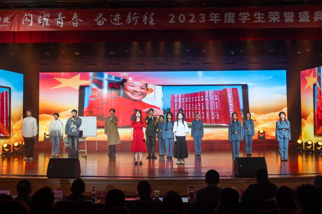 为进一步弘扬工匠精神、打造工匠摇篮,进一步发挥榜样的示范作用,12月28日晚,“闪耀青春·奋进新程”2023年度学生荣誉盛典暨新年晚会在图书馆隆重举行。学校党副书记陈泉淼,宣传部、教务处、学工部、团委(创业学院)、公共基础部等部门负责人,二级学院分管学生工作的书记(副书记),学工办主任、教师代表、学生代表等参加了本次活动。