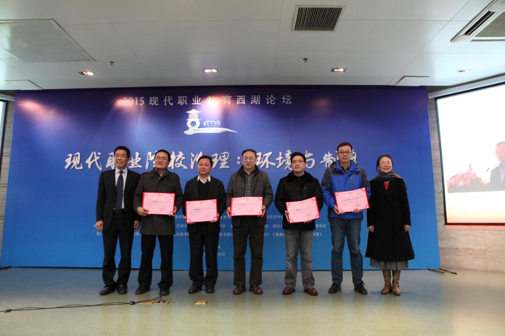 12月27至28日,由浙江工业大学和光明日报社联合主办,浙江工业大学教育科学与技术学院、光明日报教育研究中心承办的“2015现代职业教育西湖论坛”在浙江工业大学召开。28日下午的论坛闭幕式上,举行了浙江省首届“浙派”中职名师培养工程实践导师聘任仪式,我校校长贾文胜等5位全国职教专家受聘为首批“浙派”中职名师导师。省教育厅师范教育处处长庄华洁为5位中职名师导师颁发了聘书。