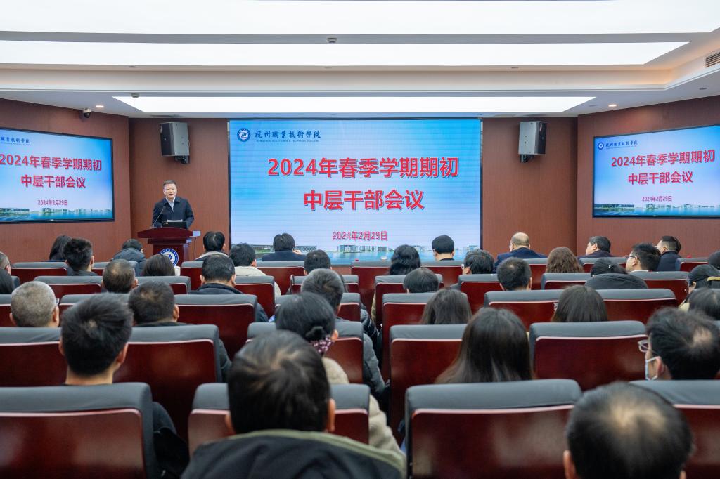2月29日上午,杭州职业技术学院在行政楼117会议室召开新学期全体中层干部会议暨2月份党委理论学习中心组学习(扩大)会议,传达上级最新精神,开展廉政警示教育,研究部署开学相关工作,明确目标任务,理清工作思路,确保新学期开学工作平安、平稳、有序进行。学校党政领导班子成员、全体中层以上干部参加会议,校长徐时清主持会议。