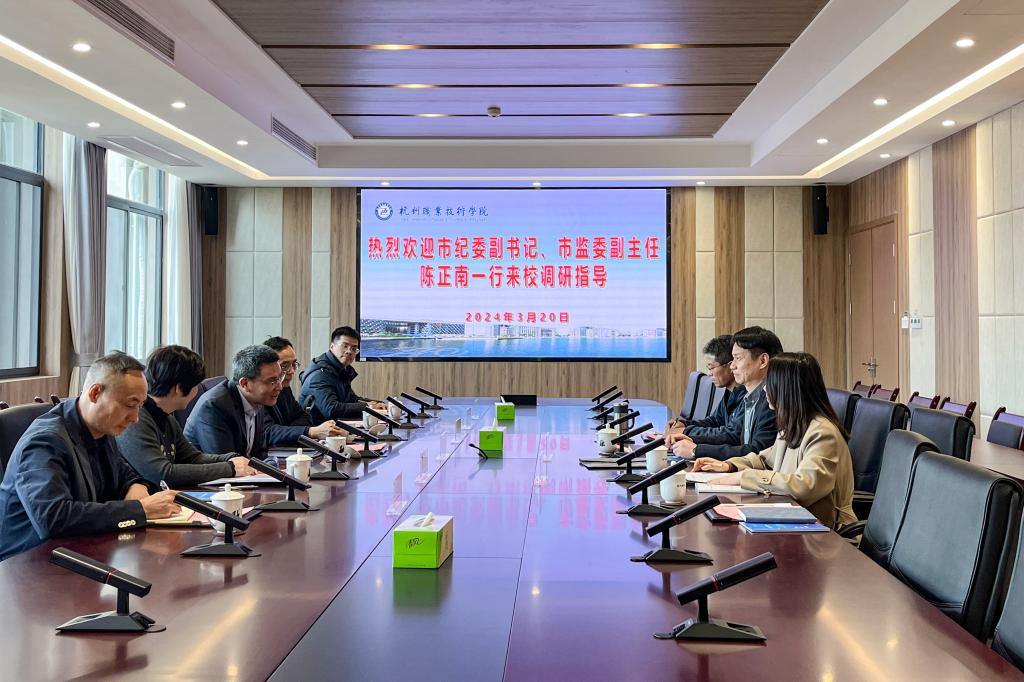 会前,陈正南一行在陈文岳等校领导陪同下,实地考察了杭职院“手脑双挥”清廉教育基地、达利女装学院、动漫游戏学院,调研学校清廉建设工作开展情况和建设成效。