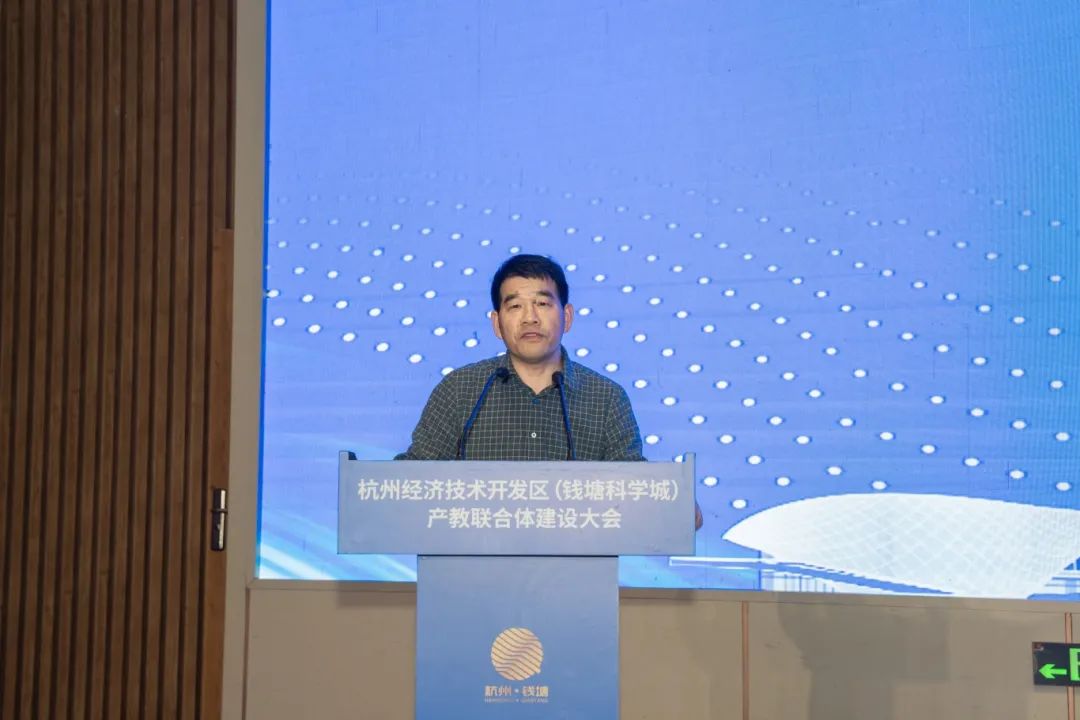 周妙荣在致辞中充分肯定了经济技术开发区(钱塘科学城)产教联合体前期建设取得的成效,指出建设大会的胜利召开,将在更大范围、更广领域、更高层次上实现政校企互惠共赢,赋能钱塘全域发展。他希望全区各职能部门进一步创新产教融合机制模式,继续搭建合作桥梁、优化服务环境,积极营造产教融合共赢氛围;希望联合体内各高校、科研院所,主动贴近产业、靠近行业、融入企业,做好教育链、做强科研链、做优人才链,与企业联合培养输送优秀人才,反哺产业能级提升;更希望更多企业加入联合体建设,着眼产业发展未来、行业发展现状、企业发展实际,与高校和科研院所多联系、早布局、利长远、谋共赢。