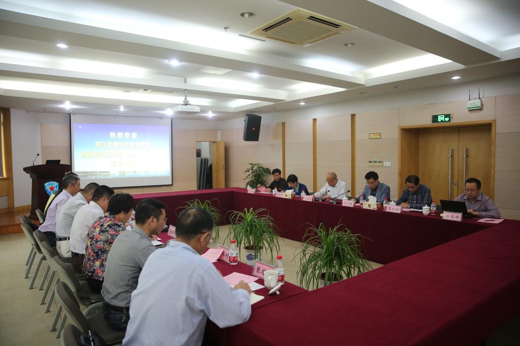 10月10日上午,浙江经贸职业技术学院党委书记劳赐铭、院长陈德泉一行来访我校。党委书记安蓉泉、校长贾文胜、副校长许淑燕,以及党政办、科研处、专业建设指导处等相关部门负责人参与接待。