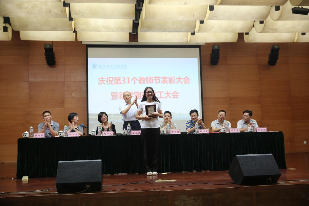9月9日下午,我校教师节表彰大会暨新学期教职工大会在图书馆报告厅举行。校党政领导班子、全体教职员工参加大会。大会分为庆祝第31个教师节表彰大会和新学期教职工大会两项议程。