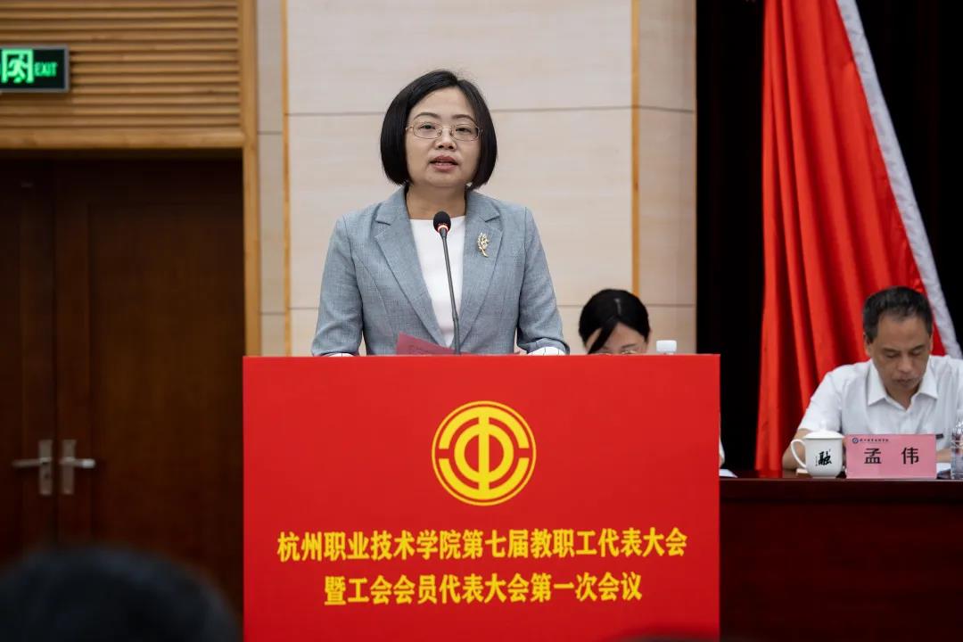 7月3日,杭州职业技术学院第七届教职工暨工会会员代表大会第一次会议在行政楼报告厅隆重召开。杭州市教育工会主席金蕾,学校党政领导班子成员,大会正式代表、特邀代表、列席代表共160余人参加大会。