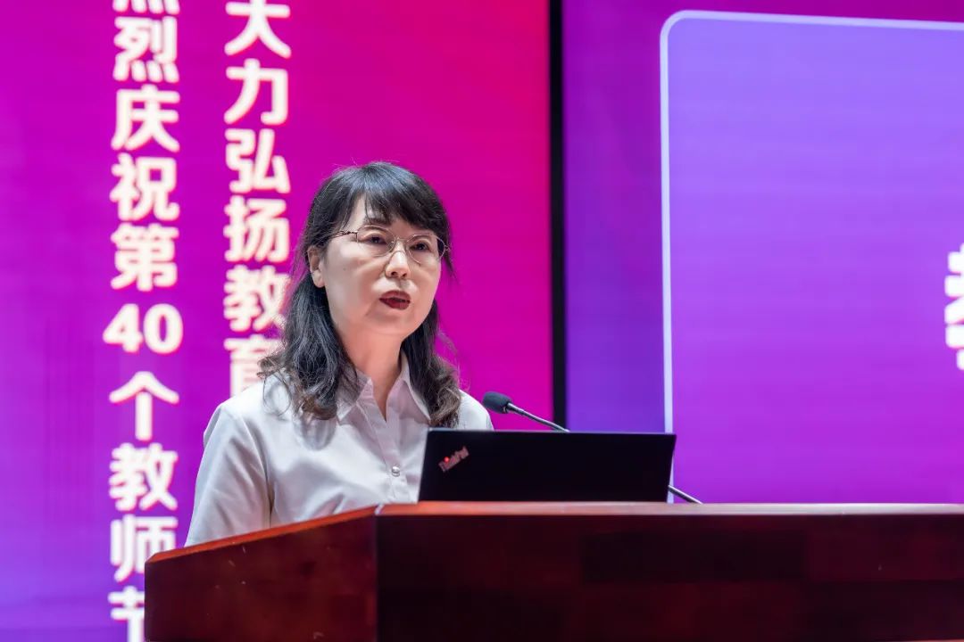 陈文岳代表学校向过去一年在教学科研和管理服务岗位中默默奉献的广大教职工致以节日祝贺和诚挚问候,并勉励大家弘扬教育家精神,共筑教育强国梦。他指出,教师节是每位教师的节日,更是教师职业的荣耀。今年的教师节主题揭示了新时代教育发展方向和使命,对教师寄予了更高期望和更严要求。他强调,回顾过去一年,在省市党委、政府的领导下,全体杭职人保持定力、坚定信心,直面挑战、攻坚克难,党建统领事业发展稳进提质,职业本科创建稳步推进,“双高”首轮验收交出满意答卷,新安江校区建设全力推进,学校各项事业取得长足进步。