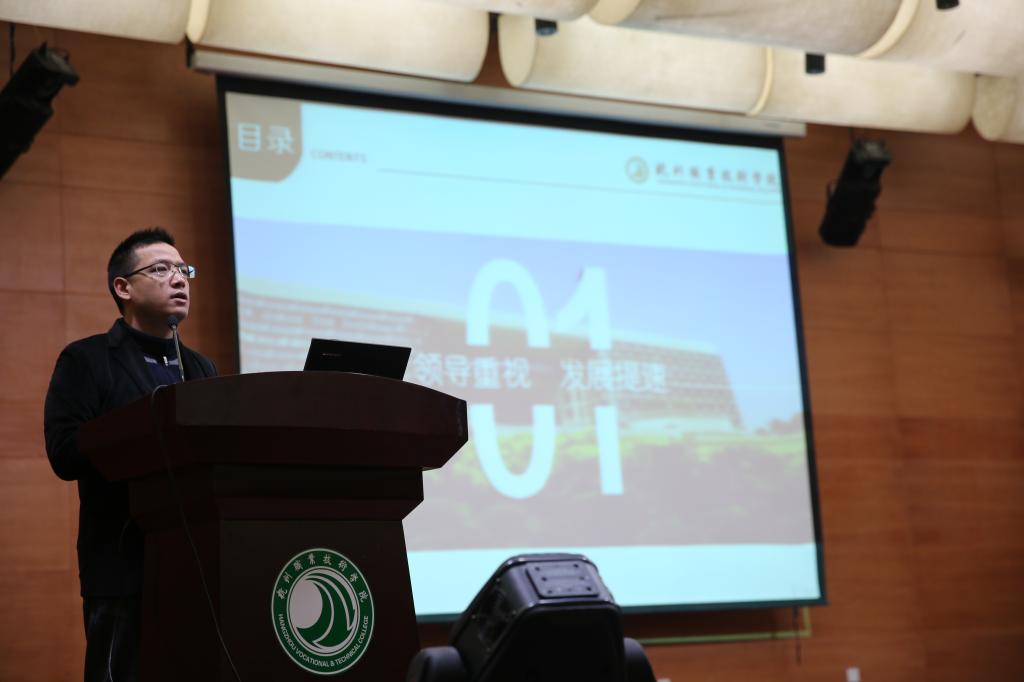 会上,校长贾文胜以“感恩有你,祝福杭职”为题,从领导重视、发展提速,捷报频传、备受关注,跨界融合、创新发展,深耕内涵、稳步提升,校园文化、立体推进,开放办学、顺势发力等六个方面,全面回顾了我校2014年的工作情况。他认为,过去一年是学校加快完成“十二五”规划、实现国家骨干高职院校建设目标的攻坚之年,更是全体杭职人在高职教育改革道路上披荆斩棘、锐意创新的一年,学校的发展迎来了更加喜人的局面,获得了国家级教学成果一、二等奖,全国教育系统先进集体,全国首届高职高专“挑战杯”特等奖、一等奖等荣誉。他指出,2015年将是承前启后、继往开来的一年,将迎来骨干校冲刺优秀、十二五完美收官、十三五蓝图绘制等重任,需要全体杭职人凝心聚力、再创辉煌。
