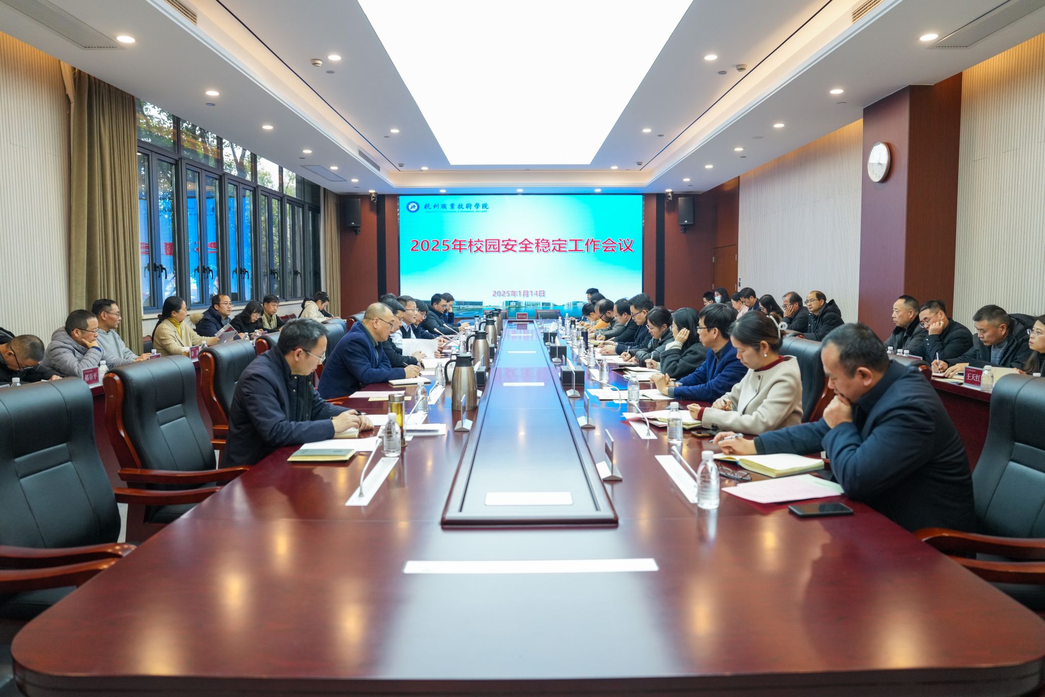 1月14日下午,我校在行政楼129会议室召开了2025年校园安全稳定工作会议。学校党政领导班子成员,各职能部门、教学单位党政负责人参加了会议,会议由校长徐时清主持。