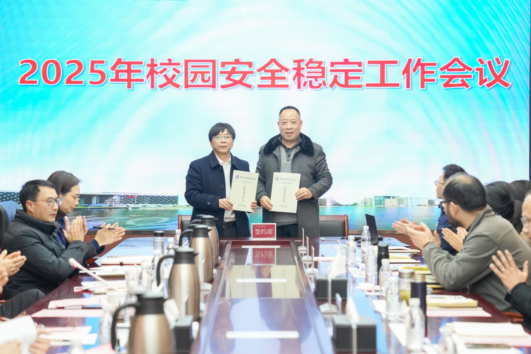 校长徐时清代表学校与二级单位代表现场签订了《2025年度校园安全稳定工作目标管理责任书》。