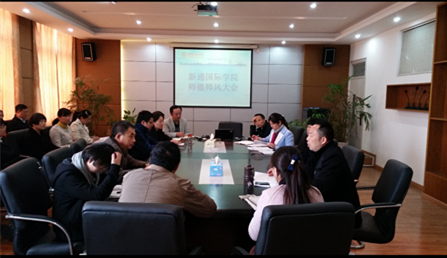 2014年11月19日新通国际学院30余名老师在分院6308会议室进行了师德师风学习大会,分院书记付文军老师主持了会议。