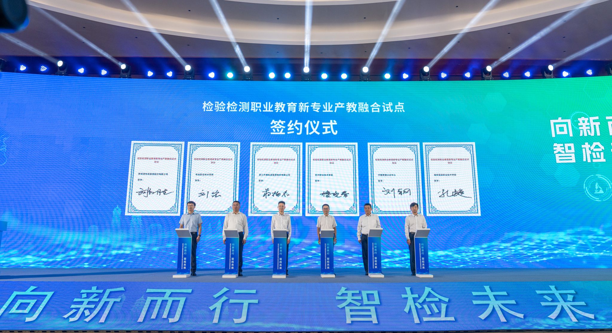 副校长楼晓春代表学校与浙江方圆检测集团有限公司签署协议,围绕“检验检测技术与管理”高职新专业,开展检验检测领域的产教融合和定向培养工作。