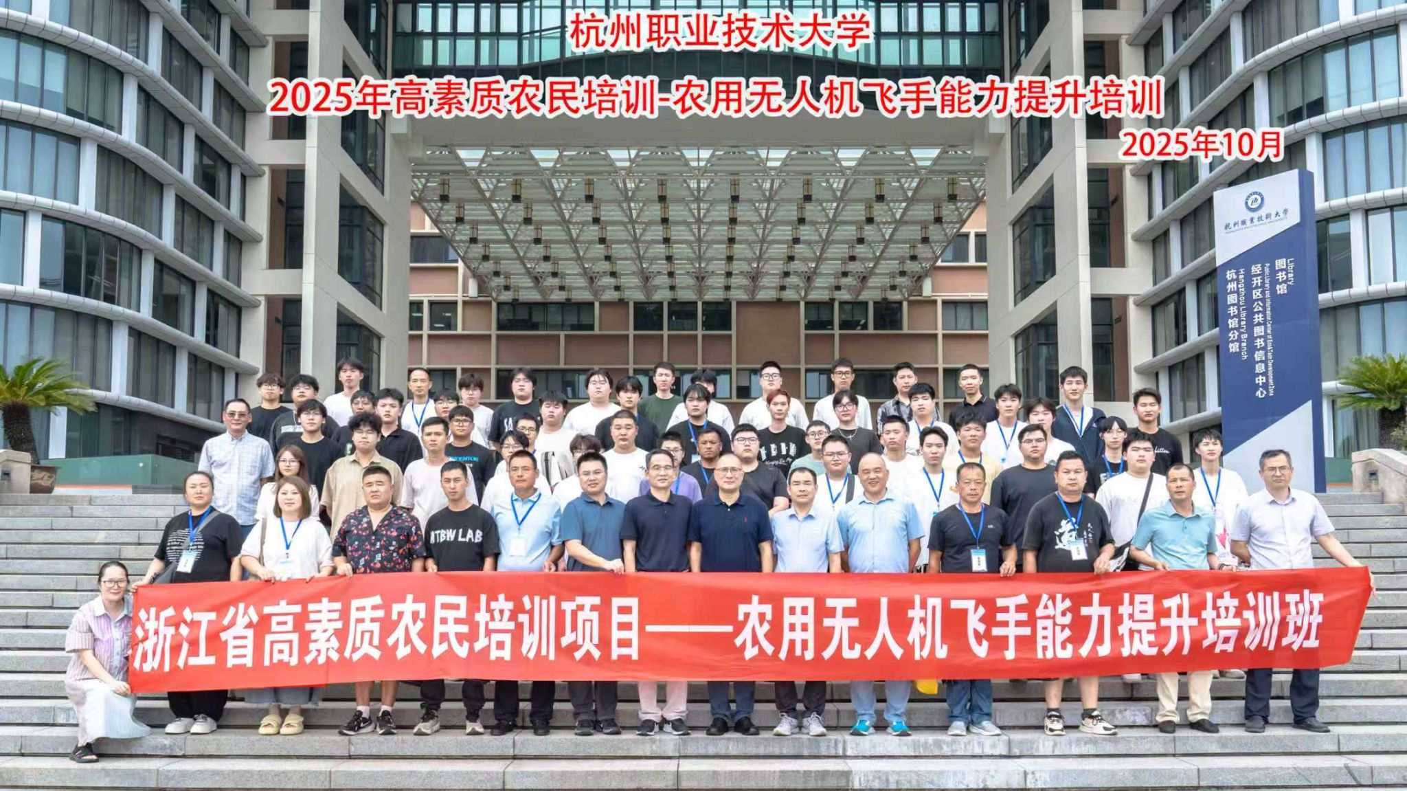 2025年10月13日,学校联合省农业农村厅、省畜牧农机发展中心、杭州市农业农村事务保障中心等省市多个相关部门举办“2025年浙江省高素质农民培训项目——农用无人机飞手能力提升培训班”。浙江省畜牧农机发展中心二级调研员申建军、畜牧农机发展中心三级调研员许渭根、杭州市农业农村局事务保障中心主任范明亮、杭州职业技术大学副校长袁俊等相关领导出席开班仪式,来自全省的50余名学员及教练代表参加活动。