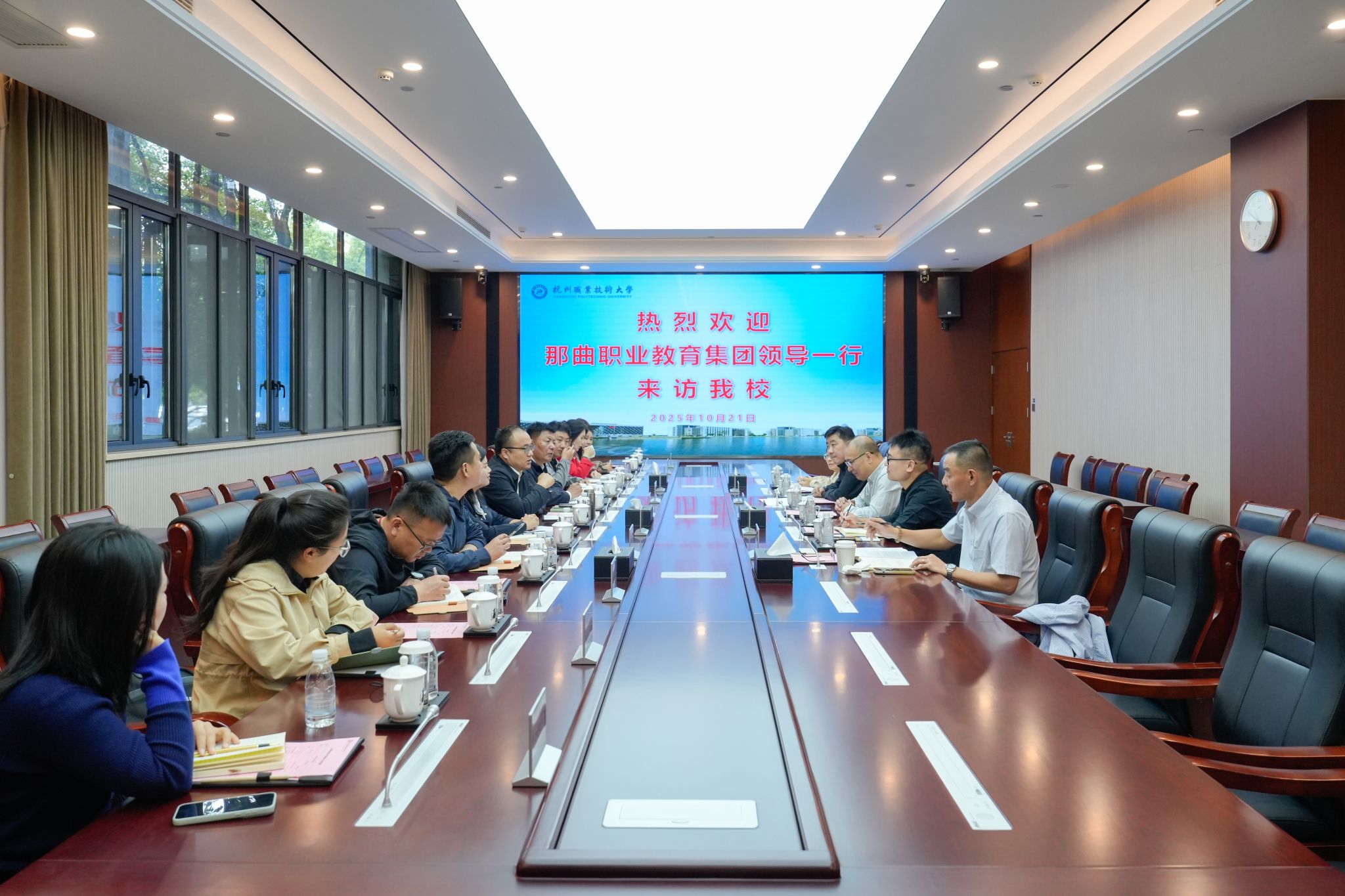 10月21日上午,那曲市教育局党组成员、副局长、浙江省教育厅高等教育处副处长、第十一批援藏干部廖波带领那曲市职业教育调研团来访我校,那曲市职业技术学校校长才嘎、副校长王星歌,那曲市第二职业技术学校副书记、副校长扎西巴登以及那曲市教育局、那曲市文旅局相关处室负责同志陪同。副校长袁俊,办公室、教务处、人事处、继教院等相关部门负责人参与接待。