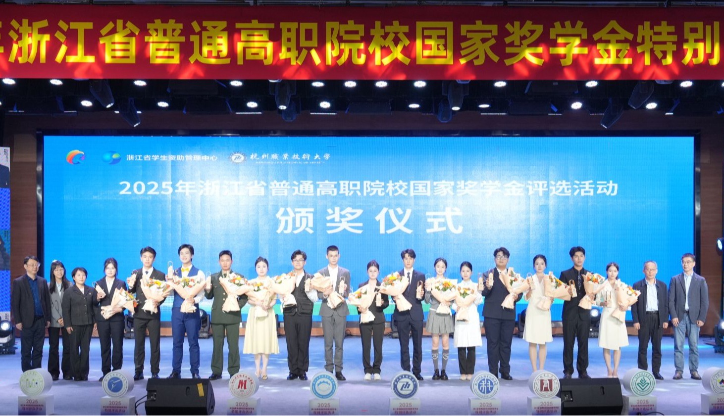 10月23日,由浙江省教育厅、浙江省财政厅主办,浙江省教育发展中心、杭州职业技术大学承办的2025年浙江省普通高职院校国家奖学金特别评选活动在我校隆重举行。经各学校推荐、专家初选,全省15名优秀学生入围参评展示,最终10名学生荣获浙江省普通高职院校国家奖学金特别评选的推荐资格。
