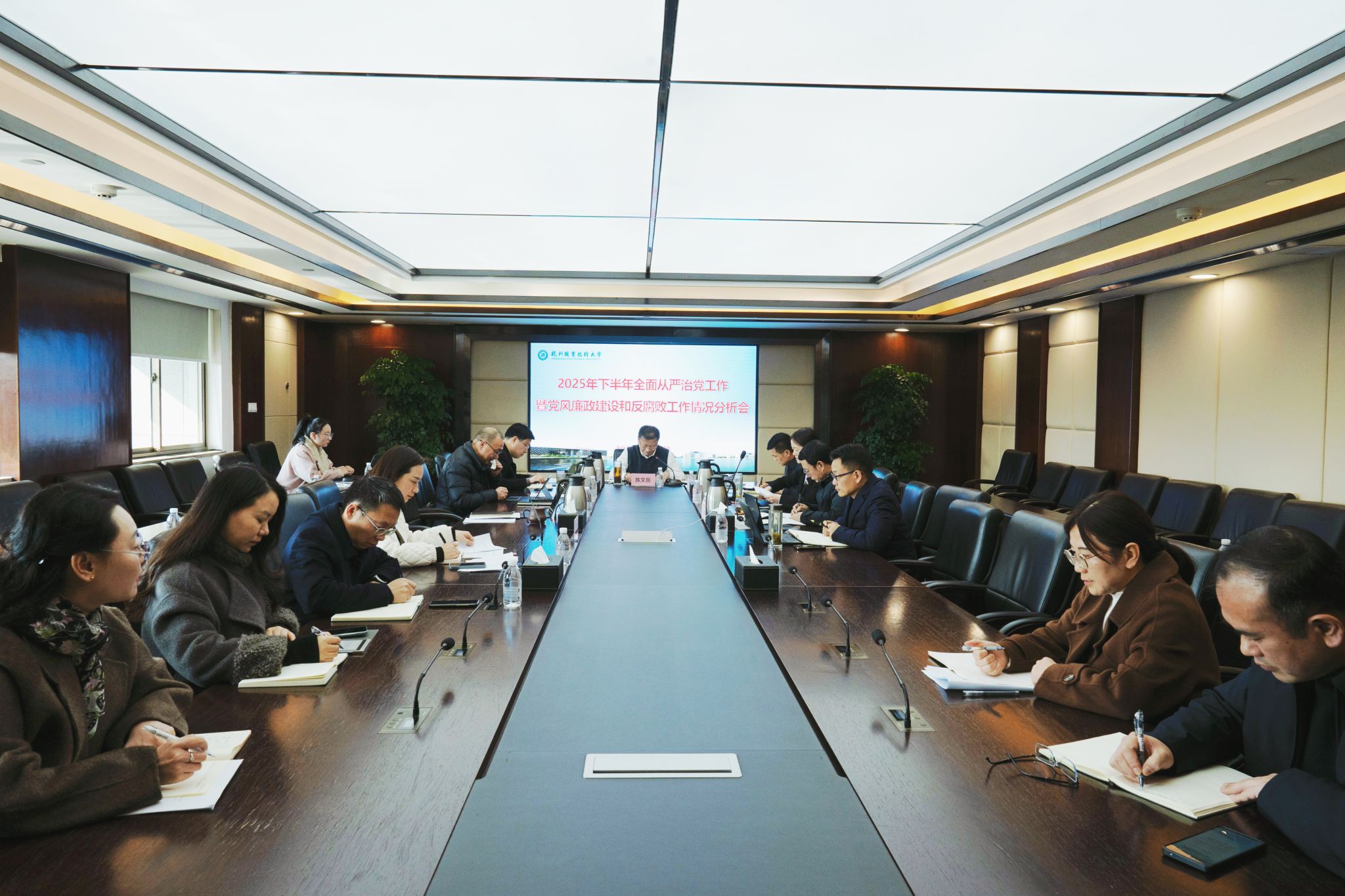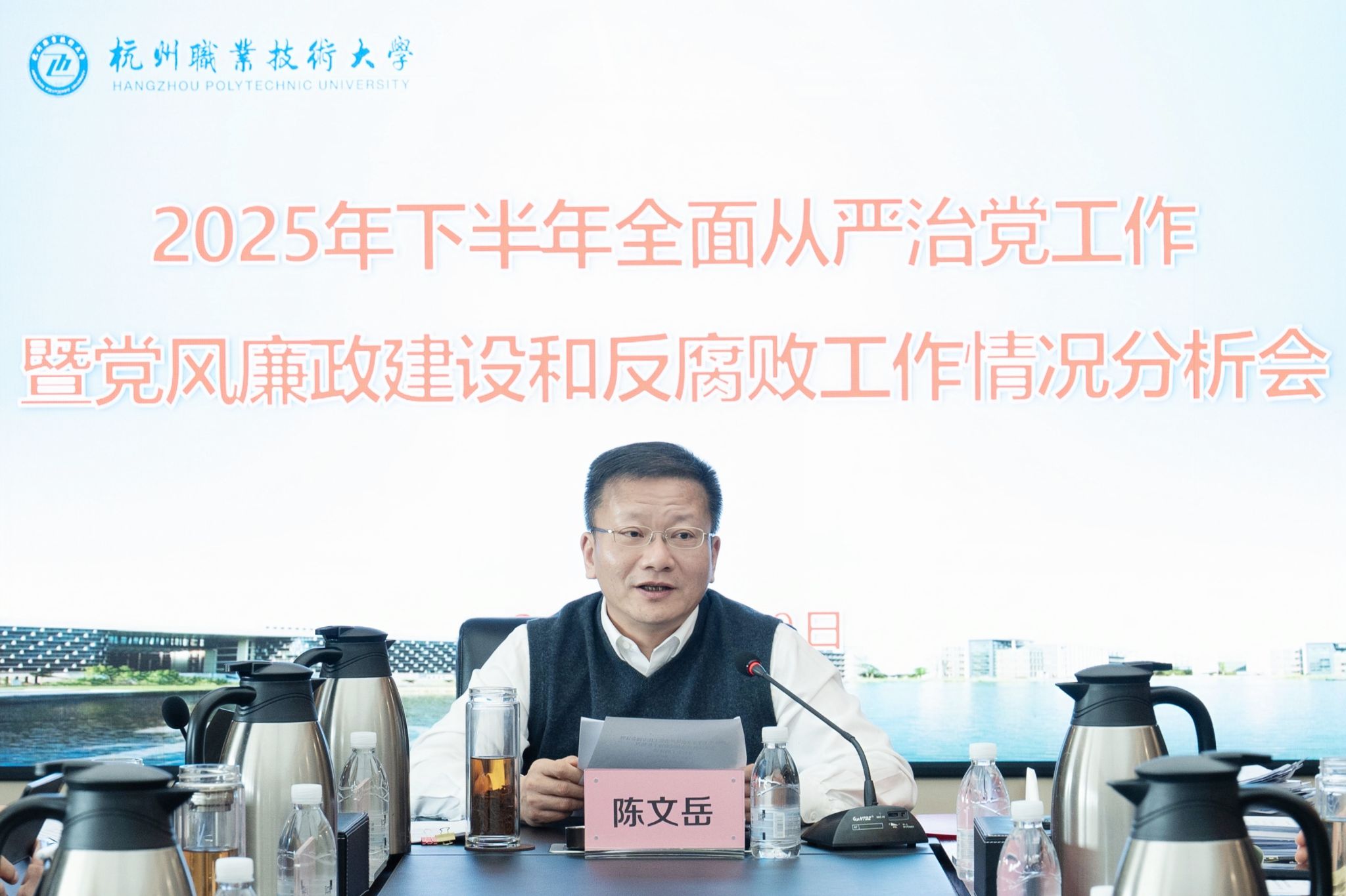 为深入贯彻落实党的二十大、二十届历次全会和二十届中央纪委四次全会精神,持续推进全面从严治党向纵深发展,1月9日上午,校党委召开2025年下半年全面从严治党暨党风廉政建设和反腐败工作情况分析会。校党委书记陈文岳主持会议并讲话,校党委班子全体成员参加会议。